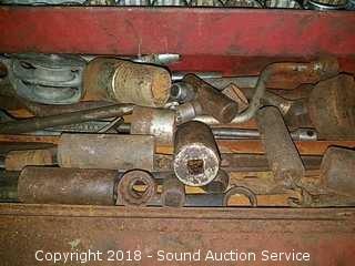 Tons of old rustic antique items & tools! Includes, Antique Buffet, Waterfall Dresser, Tiger Oak Dresser, Old Steamer Trunks, Hand Tools, Power Tools, Saws, Antique 1906 Safe, Wood Block Pulley's, Vtg. oil Heater, Trading Cards, Early 1900's Ephemera & Photos, Old Knives, WWII Military Items, Coin Banks, New Elec. Stove Top, Antique Philco Record Player, Vises, Pony Keg, Bull Horns, Horseshoes & So Much More!!!