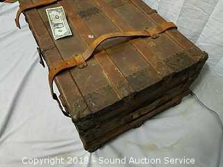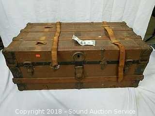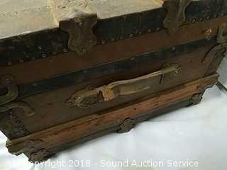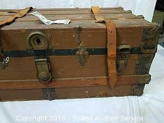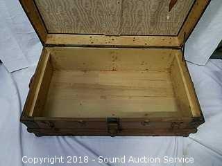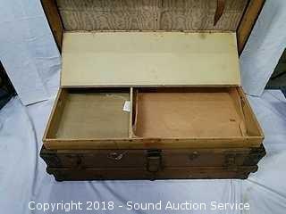 Lot #0260: Vtg. Wooden Trunk w/Tray Insert