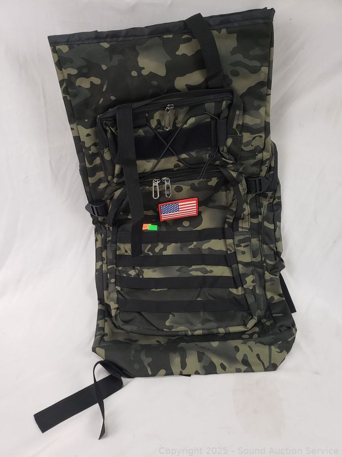 Lot #0182: 2 Green Camo Tactical Backpacks & 1 Shoulder Pack