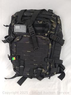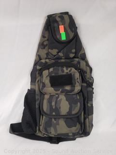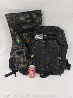 Lot #0182: 2 Green Camo Tactical Backpacks & 1 Shoulder Pack