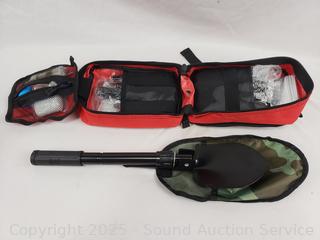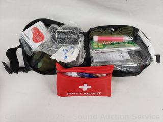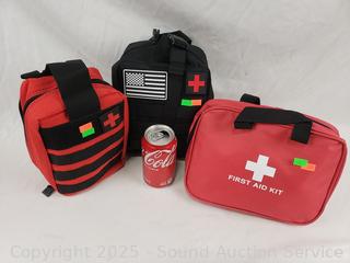 All are full of first aid, survival supplies. Refer to photos for lot contents, more details. Approx. 5" x 8" x 4" to 7" x 8" x 5" packs.