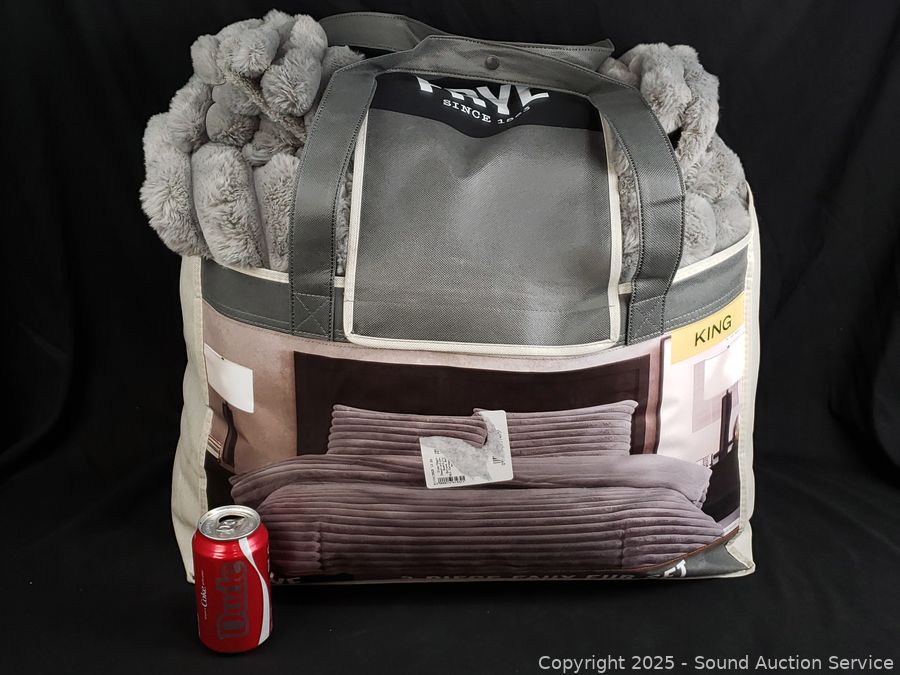 Lot #0241: 3pc Frye Faux Fur Gray King Comforter Set