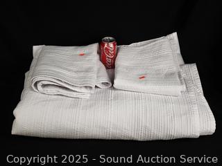 Lot #0224: 3pc Jennifer Adams Ivory King Quilted Comforter Set