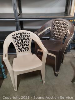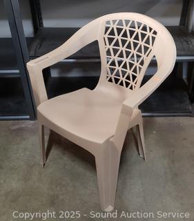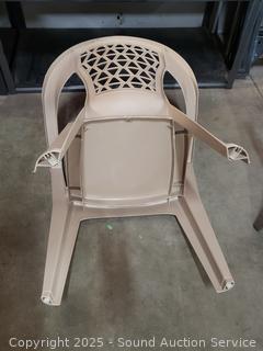 Lot #0071: 4 Stackable Brwon/Tan Plastic Chairs