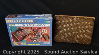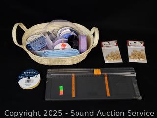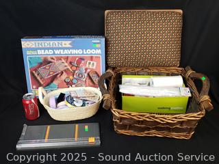 Lot #0027: Basket w/Sewing Ribbon, Indian Beading Kit, etc