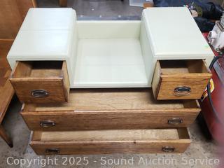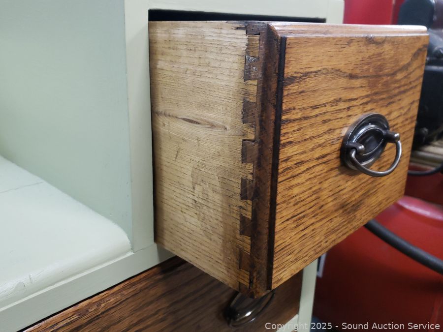 Lot #0074: Olive Green Painted Oak 4-Drawer Vanity Dresser
