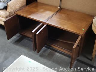 Lot #0019: Pair of Medium Finish Wood Side Table Cabinets