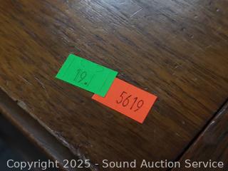 Some scuffs, paint residue wear to finish. Backing is loose one, needs reattached. Approx. 18" H x 24" x 24".