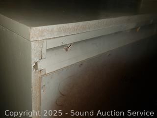 Particle board construction, dovetail joinery, laminate finish. Approx. 24" H x 38" W x 18" D. matches the precious & next few lots.