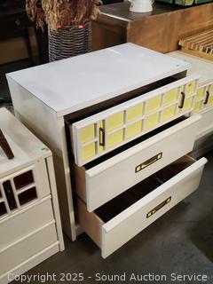 Lot #0039: White/Yellow 3-Drawer Dresser