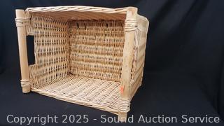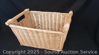 12" H x 23" x 16" woven basket, 4.5" H x 13" x 8" totes.