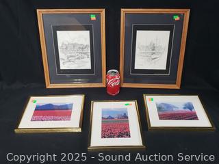 Lot #0255: 2 Edward Goodall Harbor Prints & 3 Tulip Field Photos