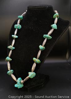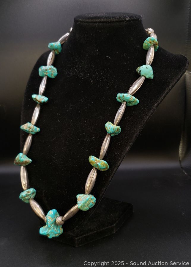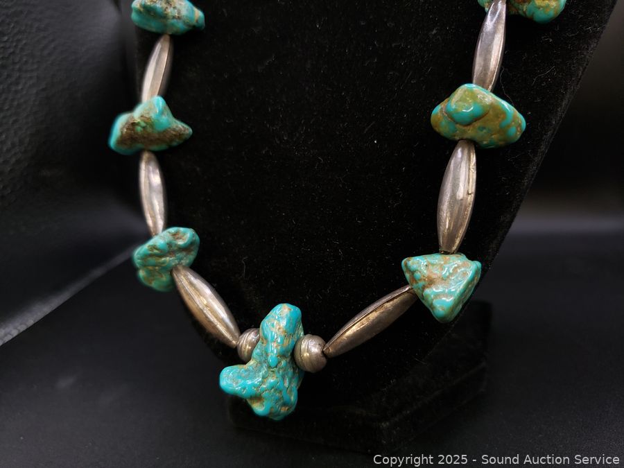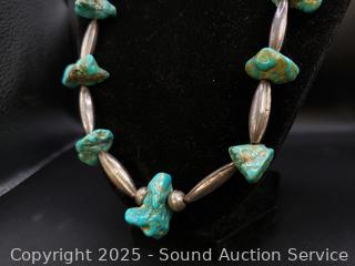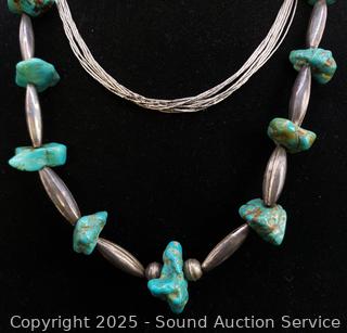 Turquoise necklace is unmarked, other is marked sterling, both tested silver. TW:68.39g. Some non-sterling weight.