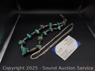 Lot #0135: 2 Native Sterling 16" & 20" Necklaces
