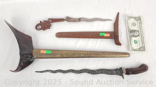 Lot #0183: 2 Primitive Indonesian? Handcrafted Forged Serpent Blade Knives
