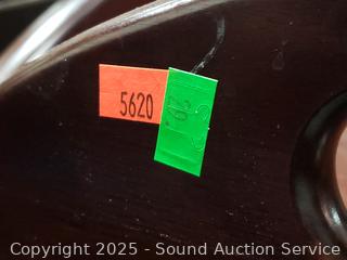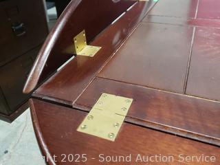 Some scuffs, wear to finish. 29" to 33" H x 25" x 35". Brass hardware.