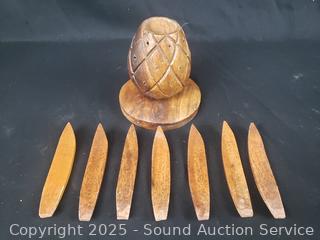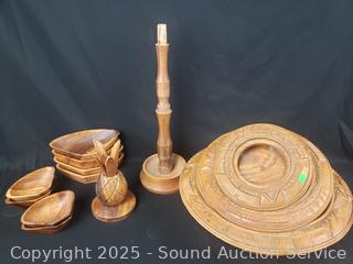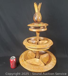 Lot #0038: Carved Monkey Bod Wood 3-Tier Appetizer Server