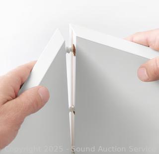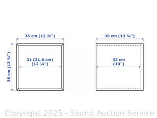 "This clever little cube is always ready to lend a hand, whether it’s storing, displaying or emptying your pockets. Choose legs/feet to place it on the floor or suspension rails for mounting on the wall." 13-3/4" x 9-7/8" x 13-3/4". Appear new, complete, unassembled in original packaging.