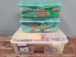 Lot #0085: 3 Small Totes of Sewing/Quilting Material