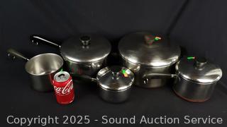 Lot #0253: 4pc Revere Ware Copper Bottom Pots w/4 Lids