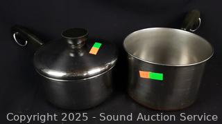 1qt, 1.5qt, 2qt, 4qt, saucepans & boiling pots. Signs of wear from use.