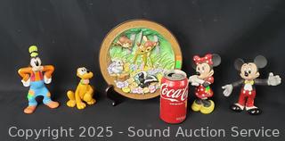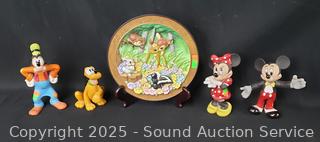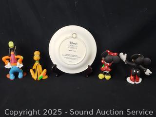 Mickey, Minnie, Pluto, Goofy porcelain figures 4.75" to 6.25" tall. 8.25" Dia. plate. Don't see any issues.