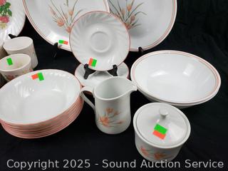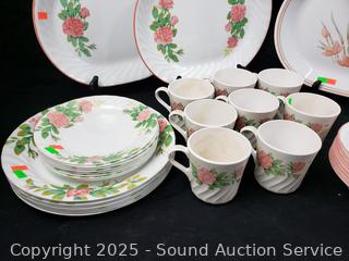 Lot #0278: 47pc Corelle White Pink Floral Dish Set
