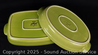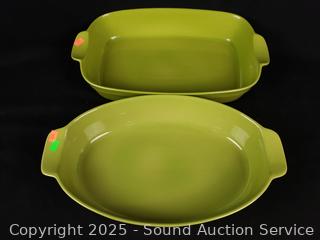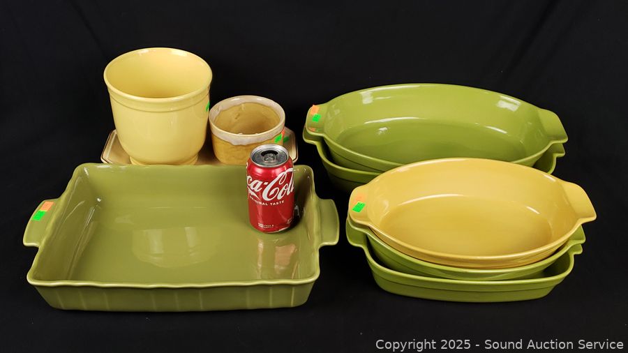 Lot #0212: 9pc Green & Yellow Stoneware Cookware Set