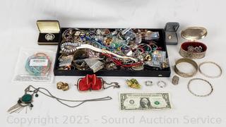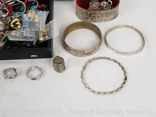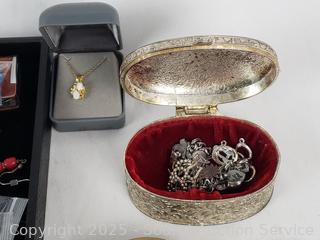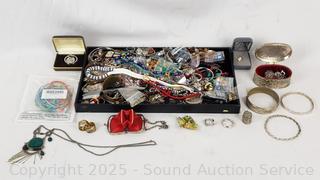 Jewelry tray NOT included. Bracelets, necklaces, rings, pendants, etc. Refer to photos for lot contents, more details.