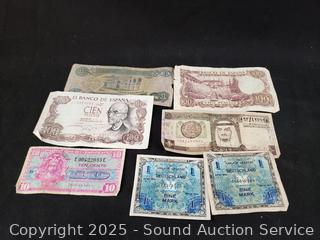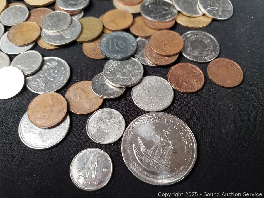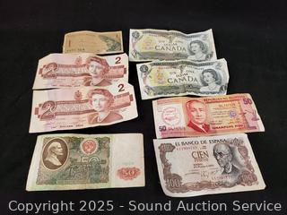 Lot #0120: Assorted Foreign Coins & Paper Currency