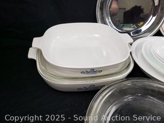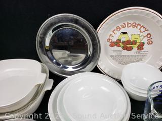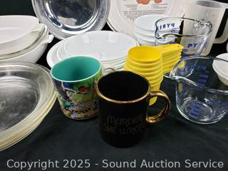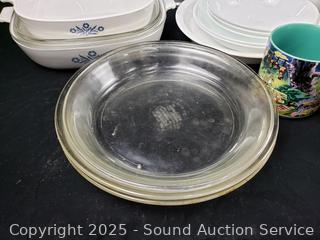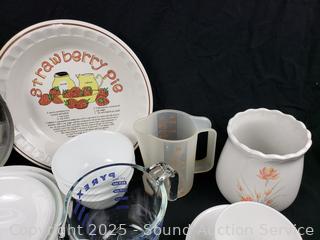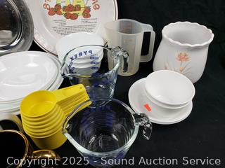 Measuring cups, corning cookware, pie pans, etc. Refer to photos for lot contents, more details.