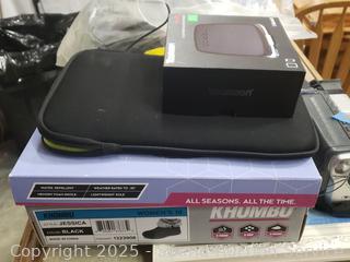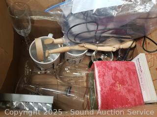 Cart NOT included. Cameras, video camera, solar energy bluetooth speaker, Star War keepsake ornaments, mugs, champagne flutes, artwork, child's bow & arrows, etc.