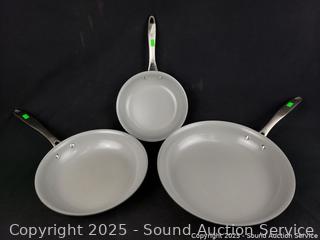 37ct Antique Player Piano Music Scrolls - Life Comfort Navy 60" x 70" Plush Throw Blanket - 40ct Assorted Antique Player Piano Music Scrolls - 3pc Tramontina Ceramic Hard-Anodized Non-Stick Skillet Set - Vintage Porcelain 3-Light Chandelier (Missing one glass shade, appears to be functioning as intended. Approx.16" H x 16" Dia, Approx. 24" chain).