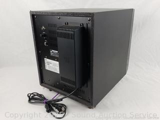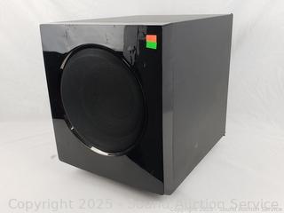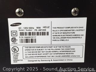 Samsung 90W Subwoofer - Model PS-AW7205. Has power, appears to be functioning as intended. Some scuffs, scratches. dings, tape residue. 15" H x 12" W x 15.5" D.