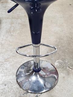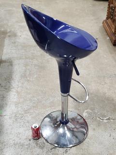 Lot #0028: Blue Metal Flake & Chrome Adjustable Height Stool