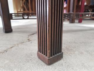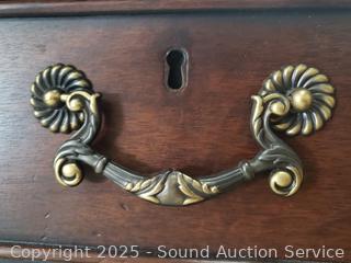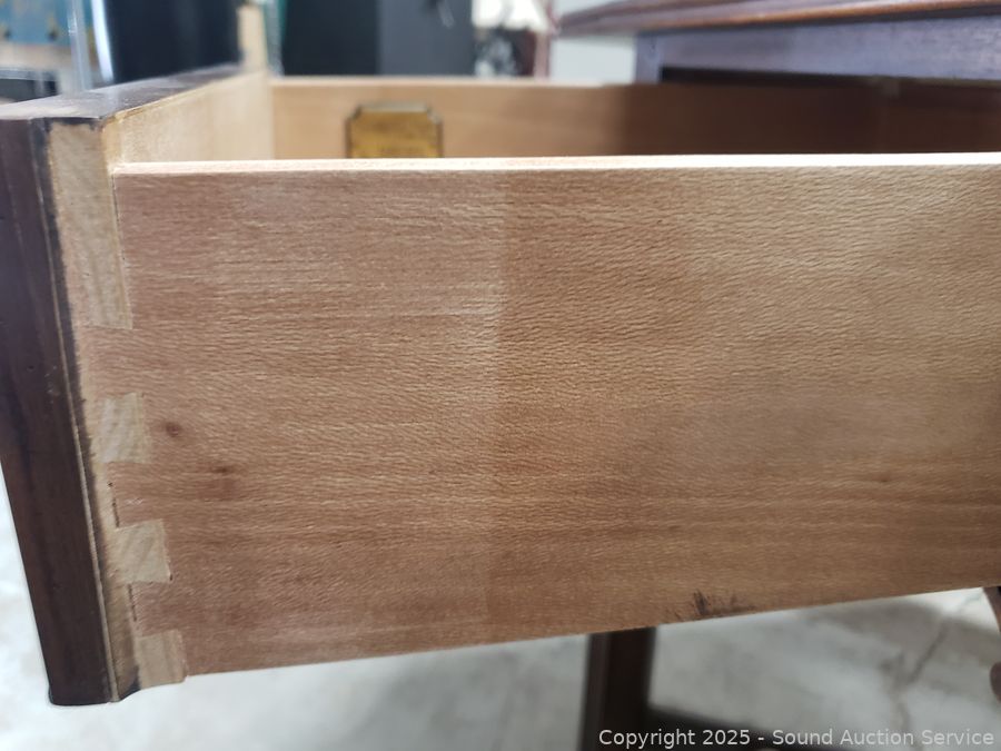 Appears to be all wood construction, dovetail joinery. 27.5" H x 22" W x 35" with (2) 11.5" drop leaves. Don't see any major issues.
