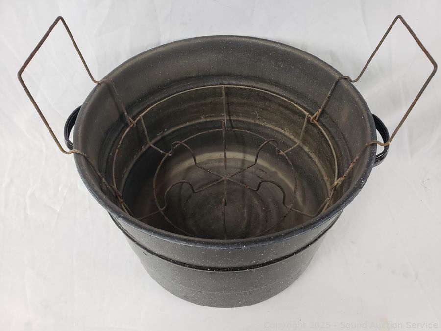 Lot #0263: Large Enamelware Canning Pot w/Insert