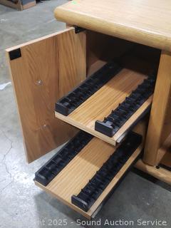 Lot #0065: Oak Rolling Media Console Cabinet
