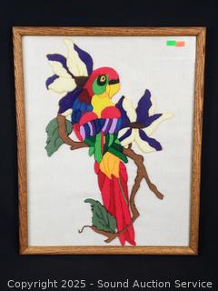 Lot #0221: Pair of Embroidered Parrot Artwork