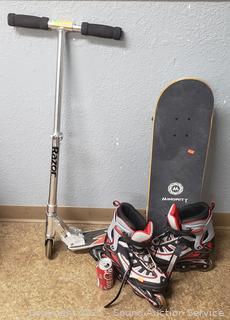 Lot #0078: Razor Scooter, Roller Blades S:9 & Minority Skateboard