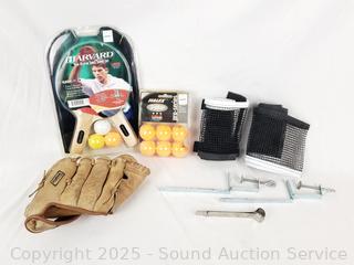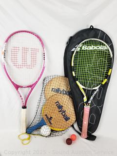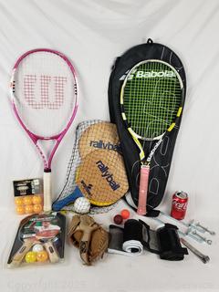 Lot #0234: Tennis Racquets, Paddles, Ping Pong Balls & Net