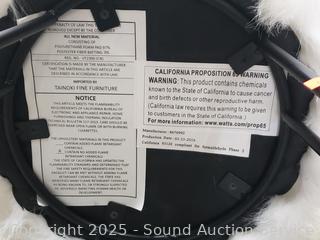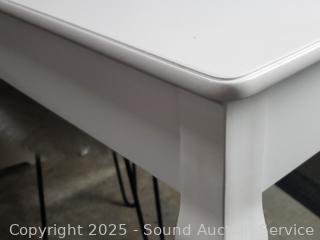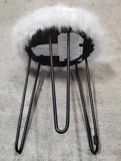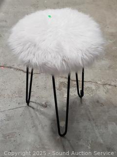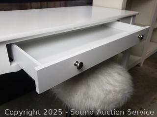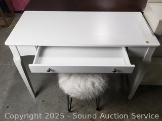 Lot #0018: White Finish Single Drawer Desk w/Wrought Faux Fur Stool