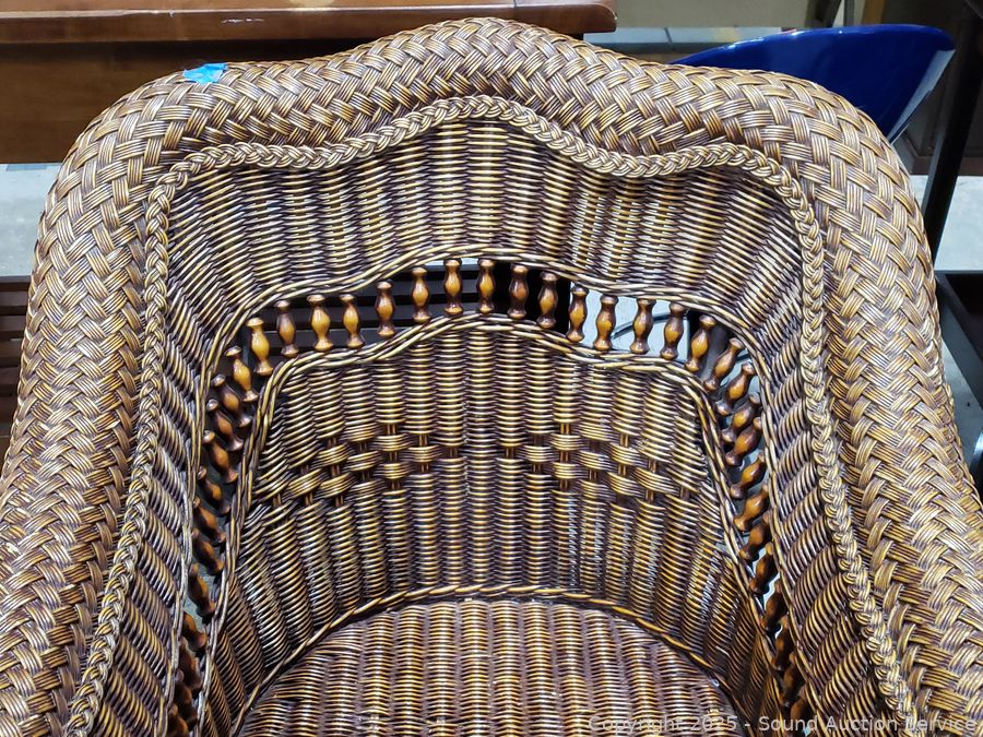 34" H x 33" W x 14" to seat. Some scuffs, wear to finish.