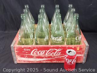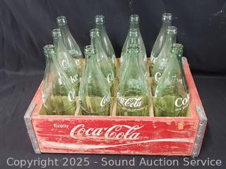 Lot #0225: Wood Coca-Cola Crate w/12 1-Pint Glass Bottles
