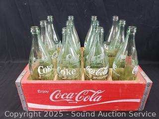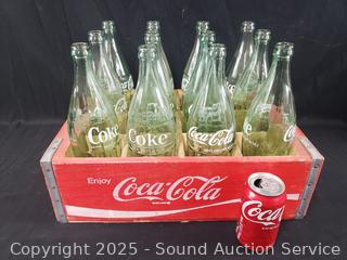 Lot #0244: Wood Coca-Cola Crate w/12 1-Pint Glass Bottles