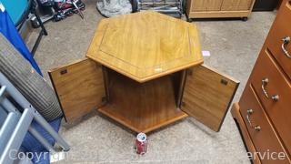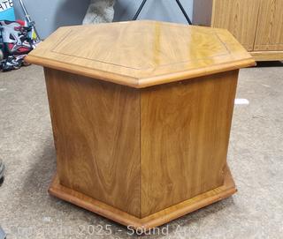 Lot #0086: Wood Grain Finish Hexagon Side Table