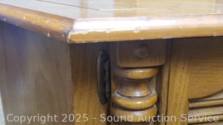 Some scuffs, wear to finish. 19.5" H x 23.5" Dia.