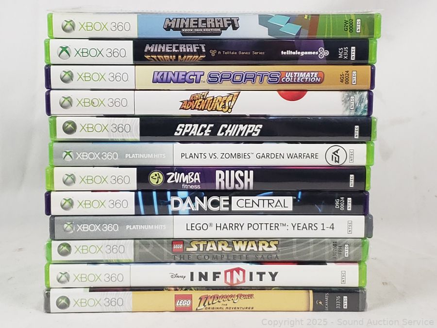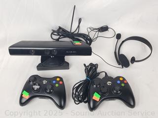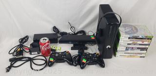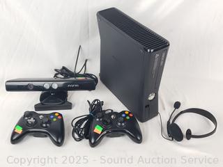 Lot #0188: XBox 360 Game Console w/2 Controllers, Kinect, Headset & 13 Games