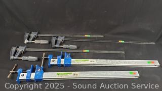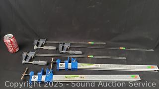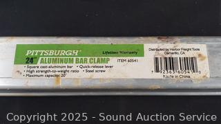 Lot #0177: 2 Pittsburgh Aluminum Bar Clamps & 3 Other Rail Clamps