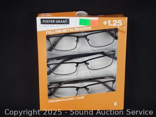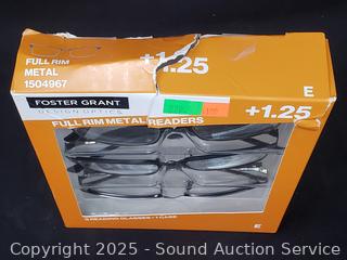 Lot #0278:     3 Foster Grant Full Rim Metal +1.25 Reading Glasses